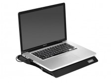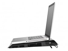 12インチから17インチサイズに対応するノートPCクーラーの新製品。放熱性の高いアルミ製メッシュと大口径200mmファンにより、騒音を気にすることなくノートPCを効果的に冷却することができる。