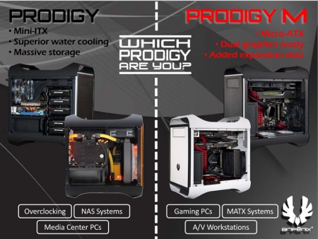 COMPUTEX TAIPEIでも展示され、登場が待たれていた「Prodigy M」は、「Prodigy」とほぼ同様の外観デザインを採用。小型PCケースながら、5.25インチオープンベイスペースを使うことで、240mmサイズ水冷ラジエターの搭載、さらにマルチグラフィックス構成も構築できる。