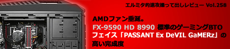 先日「エルミタ的速攻撮って出しレビュー」で詳細をお届けした、AMD FX-9590とAMD Radeon HD 8990構成の超ハイエンドゲーミングBTO「PASSANT Ex DeVIL GaMERz」の予約発売が20日よりスタートした。製品詳細については、検証記事を是非ご一読のほど。