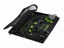 ソーラーパネルは衝撃に強いボディデザインを採用、コンパクトに収納できる折りたたみタイプで持ち運びに最適。ポータブル電源を約6~12時間で満充電可能なほか、内部のポケットにはUSB、DC12V、Guide 10シリーズ(ポータブル充電器)用ポートなど豊富な接続ケーブルを内蔵。パネルからデバイスへの直接充電もサポートする。また、ソーラーパネル連結用のケーブルも備え、対応のパネルをさらに増設することも可能だ。