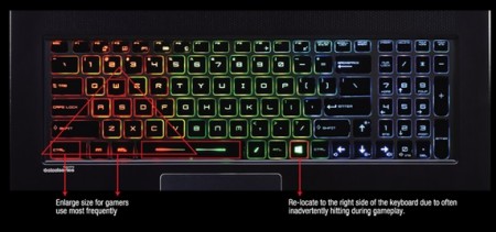液晶は映り込みの少ないノングレアタイプで、最大解像度は1,920×1,080ドット、メモリはDDR3-1600 16GB(8GB×2)、ストレージは128GB SSD×2(Super RAID 256GB)を搭載。キーボードは、カラーバックライト標準のSteelSeries製で、ネットワークはKiller Doubleshot(有線LAN/Wi-Fi両対応)を採用する。