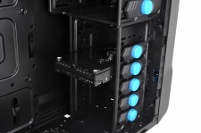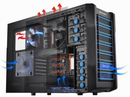 コストパフォーマンス重視のエントリーモデルで、フロントパネルには通気性の良いメッシュデザインを採用。またリア120mm(BlueLED/1,000rpm/16dBAファン搭載)×1、フロント120mm×1、サイド120mm×1、ボトム120mm×1、トップ120mm×2のファンスペースを備え、ハイエンド構成にも対応する高い冷却性能を実現している。