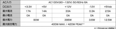 「KRPW-SX400W/90+」は、SFX規格に対応した400W電源ユニット。最小出力電流0Aをサポートし、最新CPUの省電力モードでも安定動作が可能。+12Vはシングルレーン33A出力で、PCI-Express補助電源コネクタが用意されるため、ミドルレンジクラスのグラフィックスカードも搭載できる。