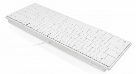 ギリギリまでに切り詰められた、ゼロベゼル仕様なコンパクト設計のキーボード。キーピッチはフルキーボード同等の19mmが確保され、スイッチは確実な打鍵感を提供するパンタグラフ式を採用する。各種ショートカットキーも実装し、ホームボタンや入力切り替えのほか、スライドショー(iPadのみ)やオーディオコントロール、画面ロック解除などをキーボード上から操作できる。