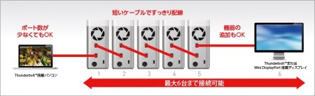インターフェイスはThunderbolt×2で、デイジーチェーン接続による最大6台の同時接続に対応。筐体は質感と放熱性にすぐれるアルミ無垢材が採用され、背面に排気ファンを搭載することで、長時間負荷がかかる処理でも安定動作を可能にした。