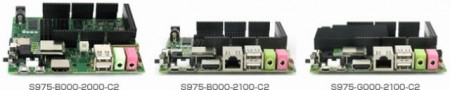 ベースモデルとなる「S975-B000-2000-C2」は、デュアルコアの「i.MX 6」プロセッサ、GPUに「Vivante GC 880/GC 320」、DDR3 1GBメモリ、USB×4を搭載する。「S975-B000-2100-C2」はさらにギガビットLAN×1、Wi-Fiモジュールを追加したモデルで、最上位の「S975-G000-2100-C2」はクアッドコアの「i.MX 6」プロセッサにGPU「Vivante GC 2000/GC 355/GC 320」を搭載するほか、新たにSATA×4が追加されている。
