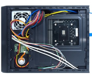 一見普通のスリム型PCケースながら、マザーボードトレイ部には裏配線用ワイヤリングホールを多数用意。スルーホールを上手に使う事で、スッキリとしたケーブルレイアウトで組み上げる事ができる。