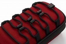 | 携帯音楽プレーヤーは本体内部に収納可能 | 背面にはバッグなどに取り付けるストラップを標準装備 |
