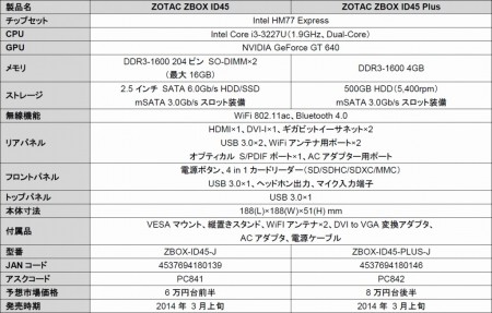 ZOTACブランドのミニPC「ZBOX」シリーズの新モデルがアスクより取り扱い開始。ベースモデルのベアボーンキット「ZBOX ID45」と、4GBメモリと500GB HDDを組み込んだ完成品モデル「ZBOX ID45 Plus」の2製品が来月にも発売される。