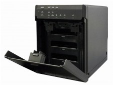 インターフェイスはUSB3.0×1、eSATA×1。RAIDレベルは、JBOD/JBOD×2/RAID 0/RAID 0×2/RAID 5×2/RAID 50/RAID 10×2に対応し、RAID 0では最大250MB/secの高速アクセスを実現。さらにRAID 5/10/50ならドライブ故障時でもリビルドで復旧することができる。