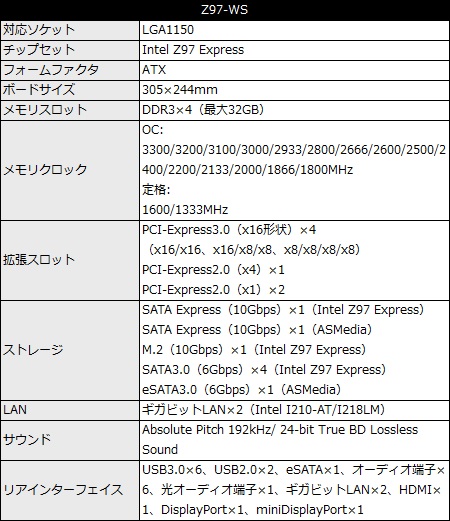 PCI-Express3.0(x16形状)スロットを4本備える、Intel Z97 Expressマザーボードの新製品。4-Way NVIDIA SLI/AMD CrossFire Xをサポートし、グラフィックスを多用するワークステーションやハイエンドゲーミングPCに向く。