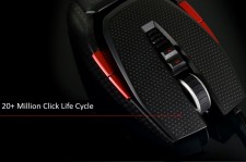 カスタマイズ可能な9ボタンを実装し、左右クリックボタンには2,000万回耐久のオムロン製マイクロスイッチを採用。専用ソフトウェアではボタンへの各種マクロ設定の割り当てのほか、LEDのカラーを7色から設定可能で、設定内容は512KBのオンボードメモリに保存できる。