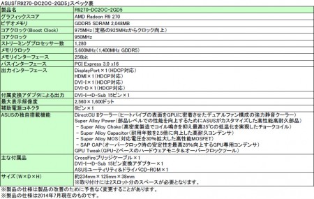 GPUにAMD Radeon R9 270を搭載するグラフィックスカードの新製品。バスインターフェイスはPCI-Express3.0(x16)で、補助電源は6pin×1。