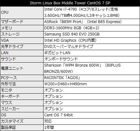 ストームが展開している「Linux Box」シリーズから、Cent OS 7 64bitをプリインストールしたミドルタワーPC「Storm Linux Box Middle Tower CentOS 7 SP」がリリースされた。