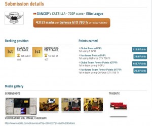 ちなみにDANCOP氏の記録は「Catzilla-720pベンチマーク」世界最高となる“43,121”ポイントを達成。使用マザーボードは、先日9つの世界最高記録を更新した「GA-Z97X-SOC Force」で、改めてオーバークロック耐性の高さを証明する結果と言えるだろう。