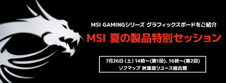 MSI GAMINGシリーズのグラフィックスボードを紹介する店頭イベント。当日はMSIオリジナルVGAクーラー「Twin Frozr」について、歴代モデルの変遷を交えた特徴の解説セッション。さらにMSI「GAMING」シリーズの独自機能や、簡易オーバークロックユーティリティ「GAMING APP」について、実機を交えて徹底解説を行う。
