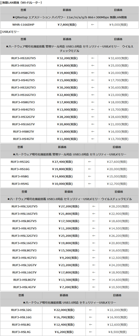 バッファローブランドの無線LAN親機(Wi-Fiルーター)「WHR-1166DHP」および、ハードウェア暗号化機能搭載のUSBメモリ32製品の価格改定を発表した。新価格は即日適用される。
