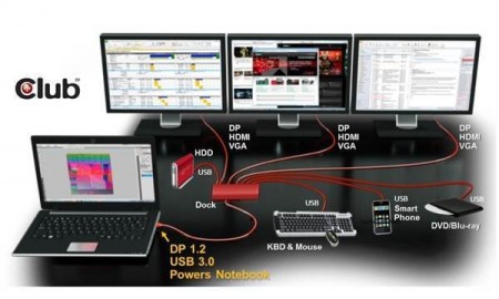 AV機器も多数手がけるClub3Dより、複数の周辺機器をまとめて接続することができるドッキングステーション「SenseVision Y-Cabled Docking Station」がリリース。接続インターフェイスはUSB3.0とminiDisplayPortに分岐したY字ケーブルで、Ultrabookなどの作業効率と生産性を向上させることができる。