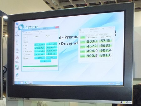 | 「COMPUTEX TAIPEI 2014」に展示されていたデモ機では、「PlexTurbo」により読込・書込とも最高5,000MB/secを超えるパフォーマンスを実現 |