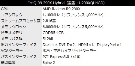 HISブランドより、世界最速を謳うコアクロック1,100MHz(リファレンス1,000MHz)、メモリクロック6,000MHz(同5,000MHz)のRadeon R9 290X「IceQ R9 290X Hybrid」(型番:H290XQH4GD)がリリースされた。