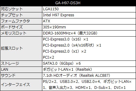その他、拡張スロットはPCI-Express3.0(x16)×1、PCI-Express2.0(x4/x16形状)×1、PCI-Express2.0(x1)×2、PCI×2で、マルチグラフィックスは2-WayのAMD CrossFire Xに対応。バックパネルインターフェイスは、PS/2×2、USB3.0×2、USB2.0×4、ギガビットLAN×1、音声入出力×3、HDMI×1、D-Sub×1、DVI×1を備える。