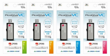 ウイルスチェックやハードウェアレベルの暗号化に対応した、グリーンハウスのセキュリティUSBメモリ「PicoDrive VC」に新モデル登場。新たにUSB3.0に対応したほか、ウイルスチェック機能をアップグレード。容量は4/8/16/32GBの4モデルで、サポート期間(1年/3年/5年間)別に全12モデルが発売される。