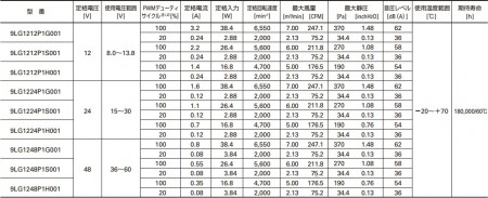 定格電圧は、DC12V/24V/48Vの3段階で、回転数は4,700/5,600/6,550min-1の3種がラインナップ。いずれもPWMコントロール機能が搭載され、最大風量は247.1CFM、最大静圧は370Paで、音圧レベルは最大62dBA。