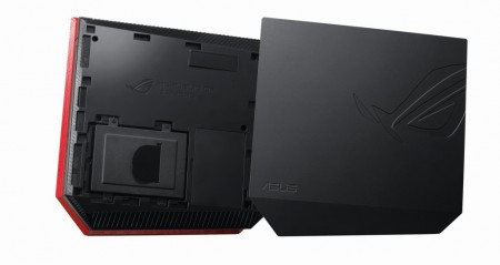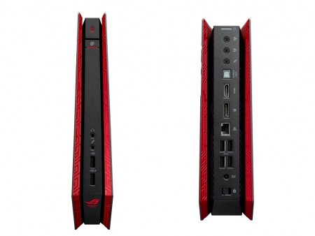 ASUS R.O.Gシリーズに属する「GR8」は、コンソールゲーム風のソリッドなデザインを採用するゲーミングPC。容量わずか2.5リットルのスリムサイズながら、NVIDIA GeForce GTX 750 TiとCore i7-4510U(2コア/4スレッド/定格2.00GHz/TB時3.10GHz/L3キャッシュ4MB)を採用し、4Kの高解像度表示にも対応する。