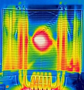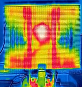 | 一般的なヒートシンク(左)と「Rev. 3 Tranquillo」(右)の熱拡散状況を測定したサーモグラフ | |