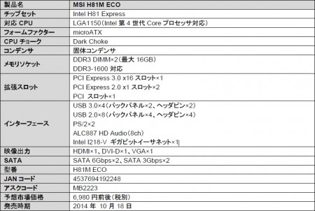 ワールドワイド向けプレスリリースで一報をお届けした、MSI「ECO」シリーズマザーボードのエントリーモデル「H81M ECO」の国内発売が、今週末より開始される。