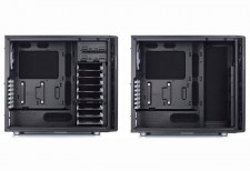 従来通りフロントパネルは開閉式で、マウンティング位置の調整により、左右両方の開閉に対応。またフロントとサイドの高密度吸音材に加え、空きファンスロットを専用プレートで塞ぐ「ModuVentデザイン」の採用により、ケース内の気密性を高め、防音性を向上させた。