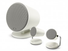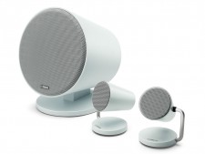 インテリア用のスポットライトをモチーフにした、Bluetooth対応2.1chスピーカーシステム。カラーはブラック、シルバー、ホワイト、ライトブルーの4色ラインナップ。Bluetoothによるワイヤレス操作により、スマートフォンやタブレット内の音楽を気軽に再生。さらにTVやPCの音声を手軽に向上する事ができる。