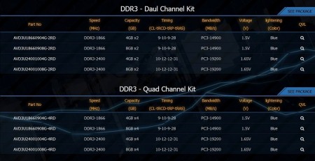 動作クロックは最大2,400MHzに対応。DDR3 1,866MHzモデルは、レイテンシ9-10-9-28で動作電圧は1.5V。DDR3 2,400MHzはレイテンシ10-12-12-31、動作電圧1.65V。それぞれデュアルチャンネルキットとクアッドチャンネルキットをラインナップする。モジュールの外形寸法はW142×D63×H9mm。