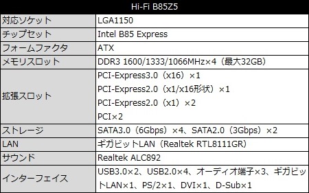 Intel B85 Express搭載のエントリー向けマザーボード。フォームファクタはATXに対応する。