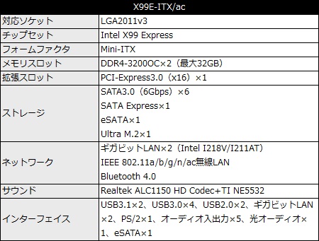 公式Facebookページにてお披露目されたIntel X99 Express搭載Mini-ITXマザーボード、「X99E-ITX/ac」がASRockから正式リリースされた。