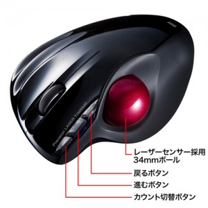 高精細レーザーセンサーを採用するワイヤレストラックボールの新製品。ボールサイズは中型の34mm径で、ボールの動きを読み取りカーソル速度を自動的に調整する「カウント調整機能」を搭載。これにより、設定を切り替えることなく思い通りのカーソル操作が可能となる。