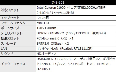 プロセッサは、TDP10WのBay-Trail D、Celeron J1900(4コア/定格2.00GHz/TB時2.41GHz/キャッシュ2MB)を搭載し、省電力ながら高いパフォーマンスを実現。またグラフィックスにはIntel HD Graphicsが採用され、デュアルディスプレイもサポートされる。