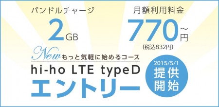ハイホーが展開するデータ通信サービス「hi-ho LTE typeD」シリーズに、月額税抜770円から利用できる低価格プラン「hi-ho LTE typeD エントリー」が追加された。
