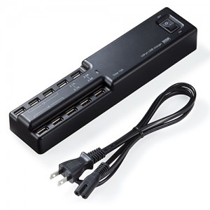 USBポートを10口装備。最大15A(75W)で一括ON/OFFスイッチも備えた、USB充電器がサンワダイレクトで発売中。
