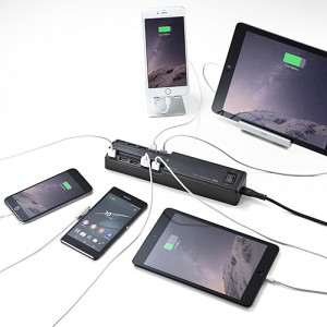 USBポートの内訳は、急速充電に対応し、タブレットやスマホ向きの2.4A×2ポート、2.1A×2ポート。スマートフォンや各種モバイル機器、デジカメなどに向く1A×6ポートで構成。3種類のポートを接続機器により使い分ける事ができる。