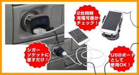 エンジンをかけると電圧・電流・温度が表示され、現在のバッテリ状態を簡単にチェック可能。また合計5V/3.1A出力に対応するUSBポートを2口備え、2台のモバイル端末を同時に充電することができる。