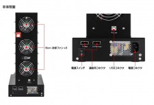 デバイスインターフェイスはSATA2.0(3Gbps)、最大速度は250MB/sec、対応ファイルシステムはFAT/NTFS/EXT2/EXT3で、SATA-IDE変換アダプタ「裸族のお立ち台のお立ち台」を使えば、IDEドライブも接続できる。外形寸法は、W180×D410×H500mm、重量約14kg。