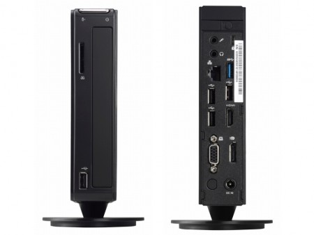 主なスペックは、メモリがDDR3L 2GB(最大8GB)、ストレージベイは2.5インチ×2(内1つは使用済み)で、グラフィックスはIntel HD Graphicsを採用。インターフェイスは、USB3.0×2、USB2.0×4、オーディオ端子×2、HDMI×1、DisplayPort×1、D-Sub×1、SDカードリーダーなど、ネットワークはギガビットLANとIEEE 802.11b / g / n無線LANに対応する。