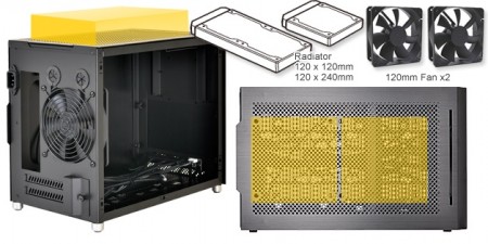 | 天板をほぼすべて通気孔とすることで効率的なエアフローを実現。冷却ファンは120mm×2に対応し、240mmまでのラジエターを実装することもできる |