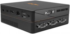 141mm角の超小型サイズを実現したBroadwell-U搭載ベアボーンキット。底面部にはオプション拡張ボックス(2016年第1四半期発売予定)コネクタが用意され、AMD Radeon R7 M370や、COMポートなどを増設することができる。