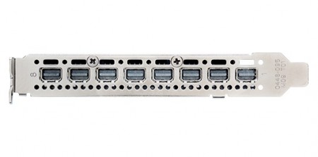 シングルスロット設計ながら基板上にはMaxwell世代のGPUを2基搭載し、計8ポートのminiDisplayPortを実装。4K(4,096×2,160@30Hz)の高解像度表示や、最大8台のマルチディスプレイ環境を1枚のグラフィックスカードで構築することができる。