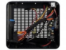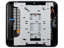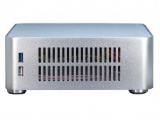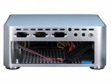 ドライブベイは、5.25インチスリムドライブベイ×1と3.5インチ / 2.5インチ共用ベイ×1の構成。背面にはWi-Fiアンテナ×2、COMポート用のホール×3も備える。電源ユニットは60WのACアダプタで、オプションにより最大120Wモデルにも対応する。