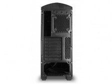 「Spitzer 22」はブラックにカラーリングされたミニタワーモデル。ドライブベイレイアウトは5.25インチオープンベイ×2、3.5インチシャドウベイ×1。冷却ファンはフロント120mm×2を標準装備し、リアとトップに120mmファンを増設できる。
