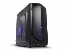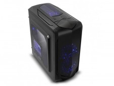 半透明のフロントパネルとLEDファンが印象的なエントリーゲーミングケース。シャシー素材は0.5mm厚のSECCで、サイドにも半透明のアクリルウィンドウを搭載する。