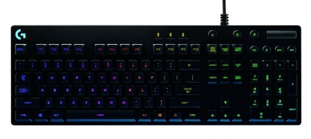 全キーにマルチカラー対応のバックライト機能を搭載、最大1,680万色のイルミネーションが設定できるメカニカルゲーミングキーボード。「Logitech Gaming Software(LGS)」を使用したカスタマイズに対応し、複数のプリセットから発光パターンを選択できるほか、ゲームコマンドなどに応じたキー単位での個別設定が楽しめる。
